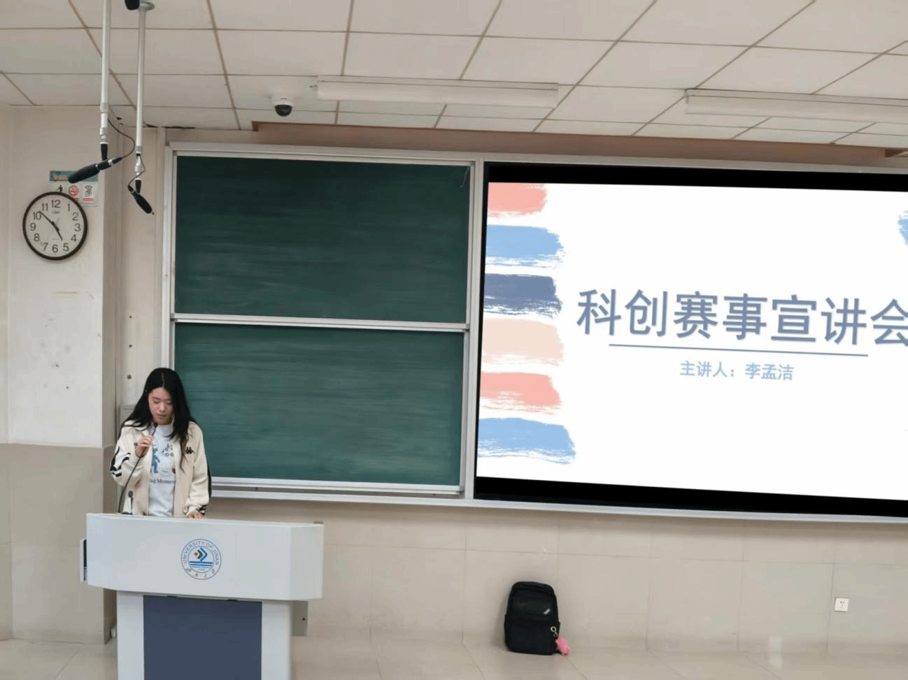 为助力新生深入了解大学科创赛事,点燃科创热情,9月26日,太阳成集团tyc33455于11J1101教室举办“青春创新创业论坛——科创赛事宣讲会”活动。本次活动由科创部部长李孟洁主讲,现场气氛热烈、座无虚席。